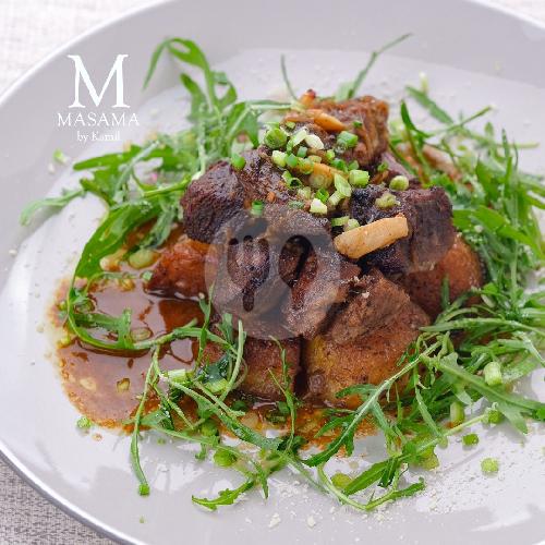 Roasted greek lamb with Kamil potatoes cooking juice and rucola