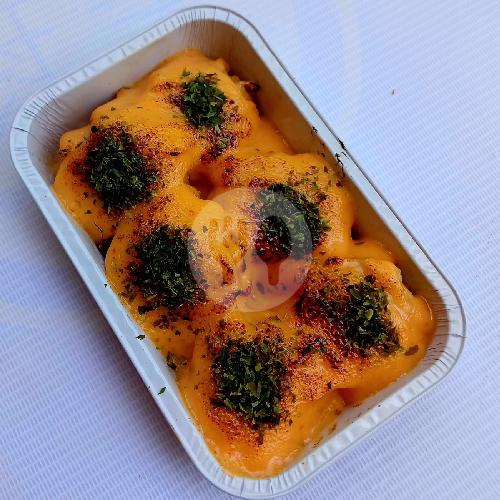 Dimsum Ayam Dengan Saus Mentai Creamy Diatasnya Dan Sedikit Taburan Nori