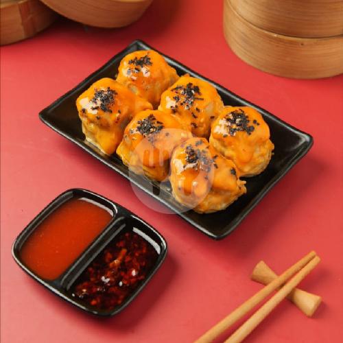 Dimsum signature dengan baluran saos mentai yang dibuat khusus oleh koki ono dimsum. Sedikit pedas, juga ada rasa manis dan juga gurih , sehingga samgat menggugaj selera.