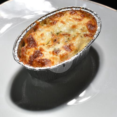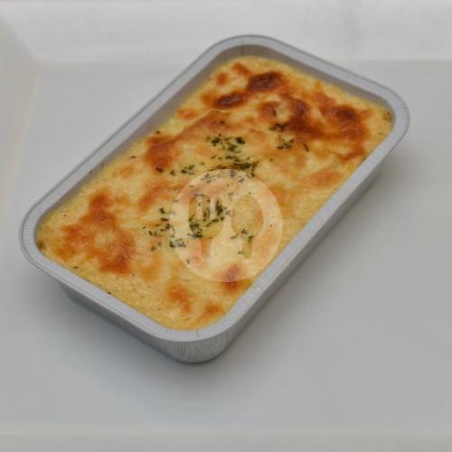 Nasi dengan toping salmon grill, kani roll dan saus mentai khas